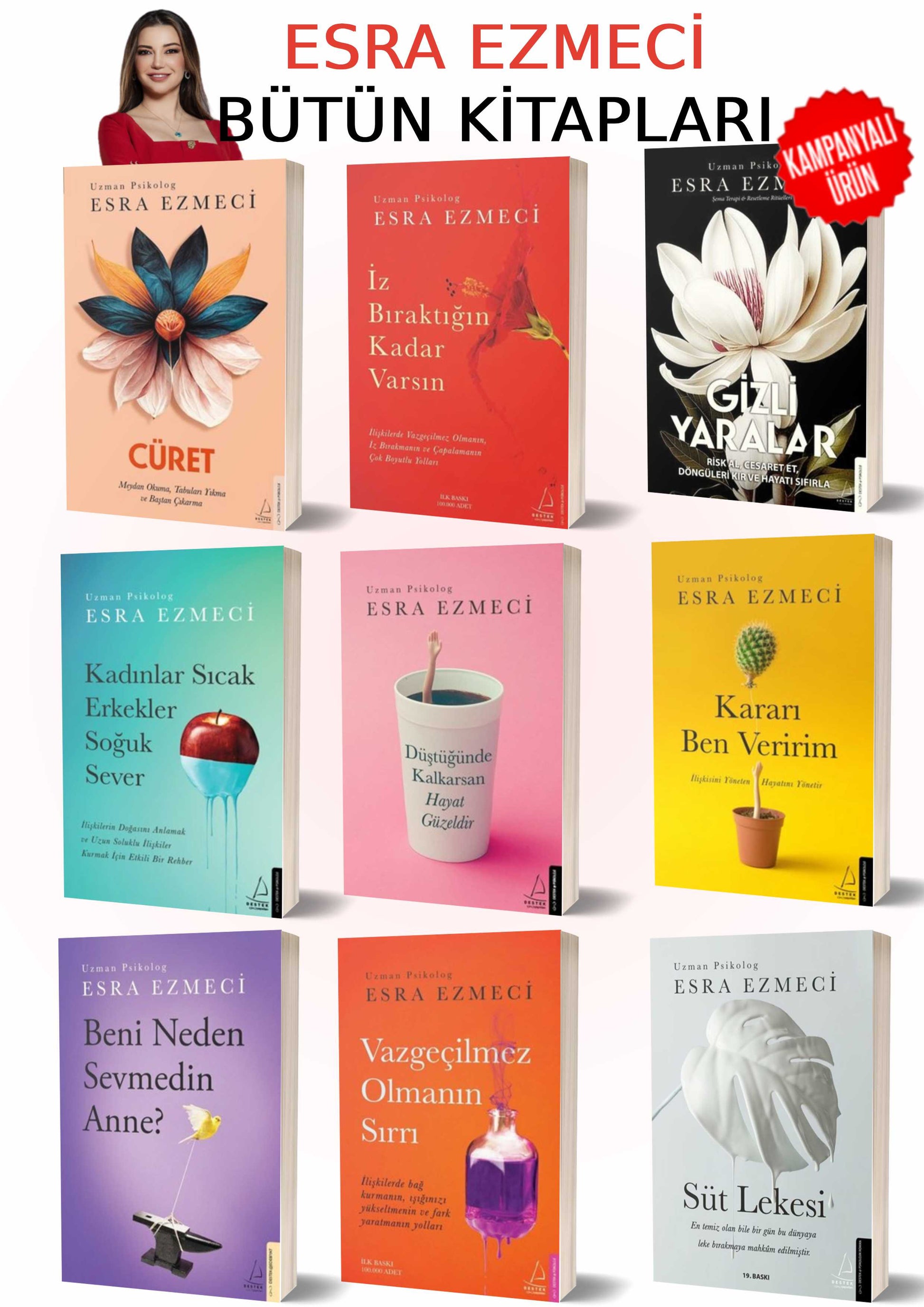 Türkiye'nin en sevilen uzman psikologlarından Esra Ezmeci, milyonlarca okura ilham veren tüm kitaplarıyla şimdi tek bir sette! Bu külliyat, size sadece sorunları göstermekle kalmıyor, aynı zamanda o sorunları aşmanız için pratik, cesur ve etkili çözümler sunuyor.